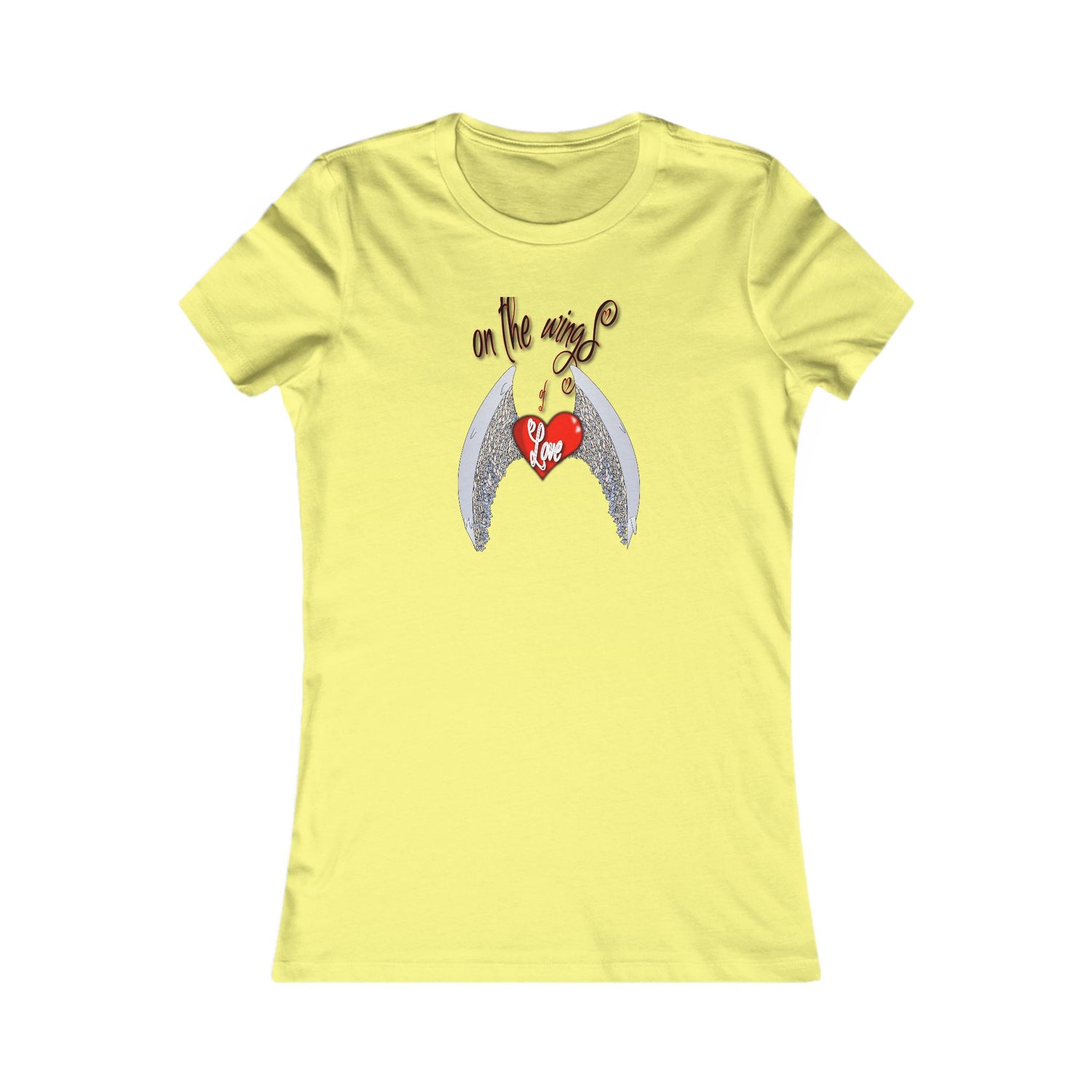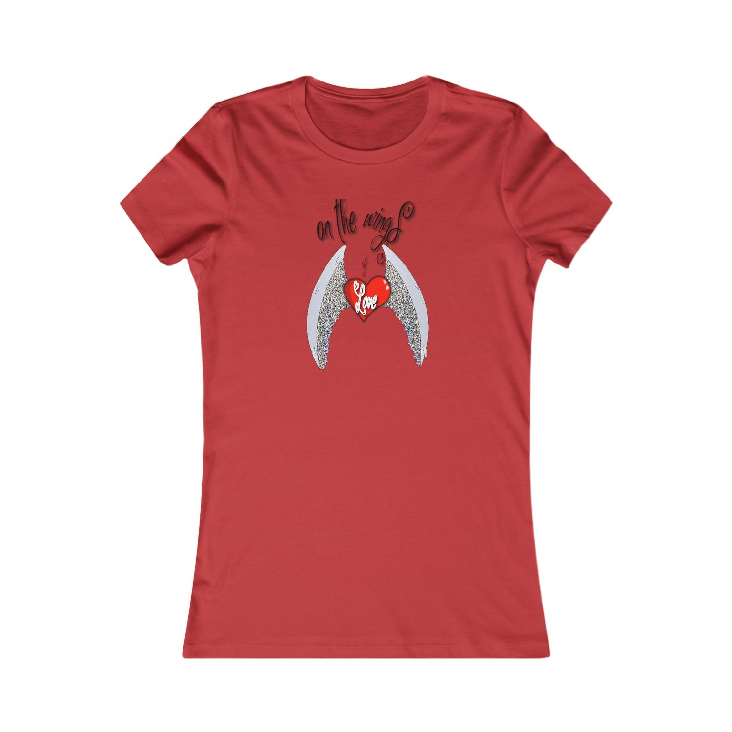 Women's Tee — 'On the Wings of Love' Angel Wings Heart Graphic Shirt
